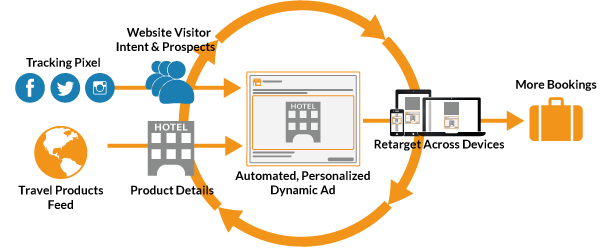 If a traveller surfs booking.com for a hotel booking in a target city, he/she will receive ads on all connected social media platforms associated with his google accounts on deals arising for that place to create a greater chance for them do book